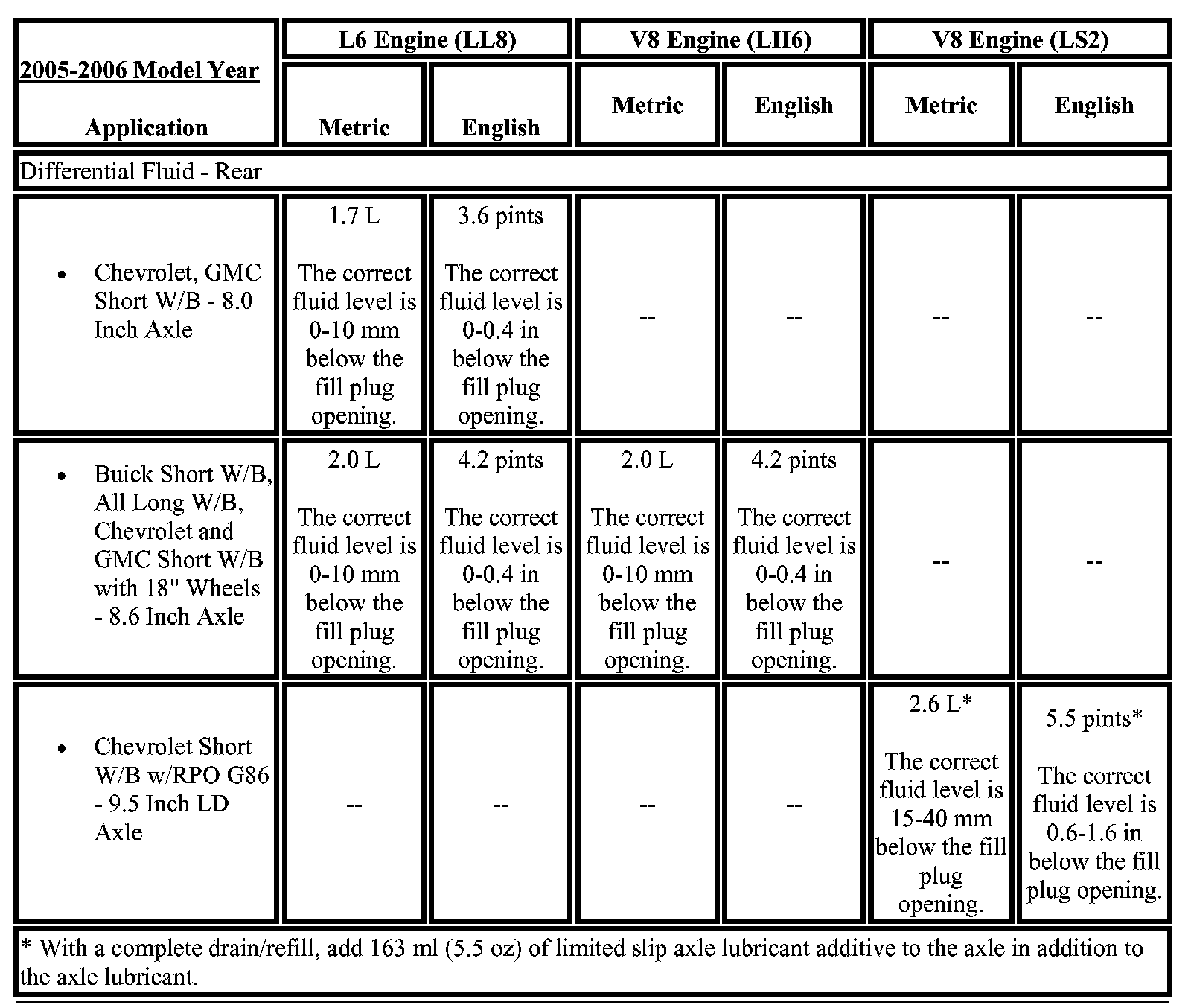 Rear Differential Fluid Capacity: