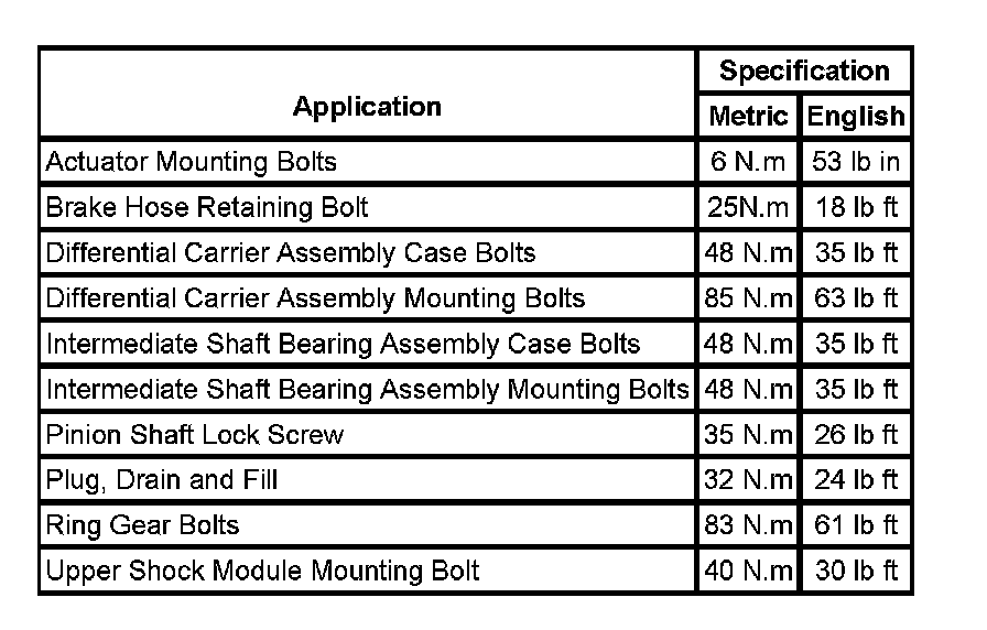Fastener Tightening Specifications: