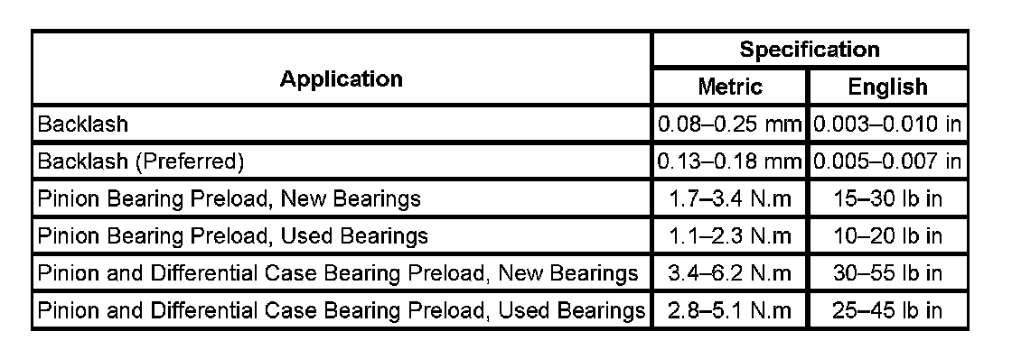 Axle Preload and Backlash Specifications: