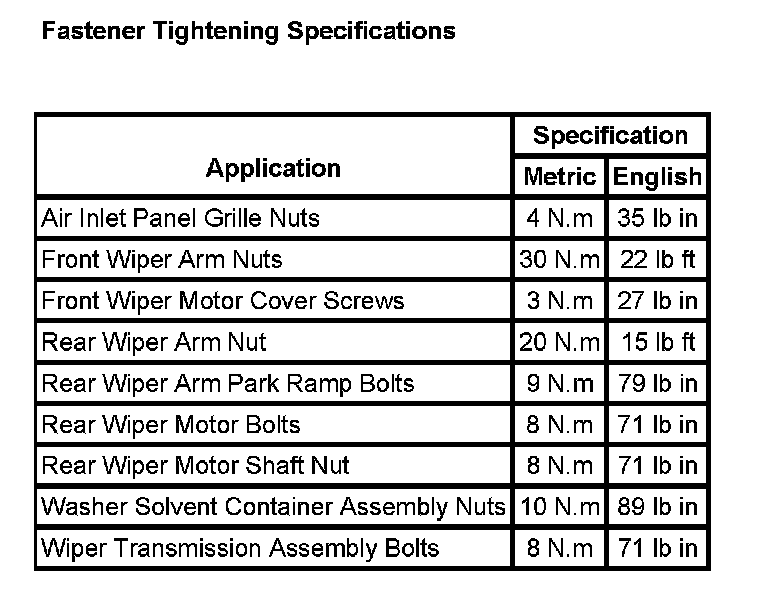 Wiper and Washer Systems: Specifications