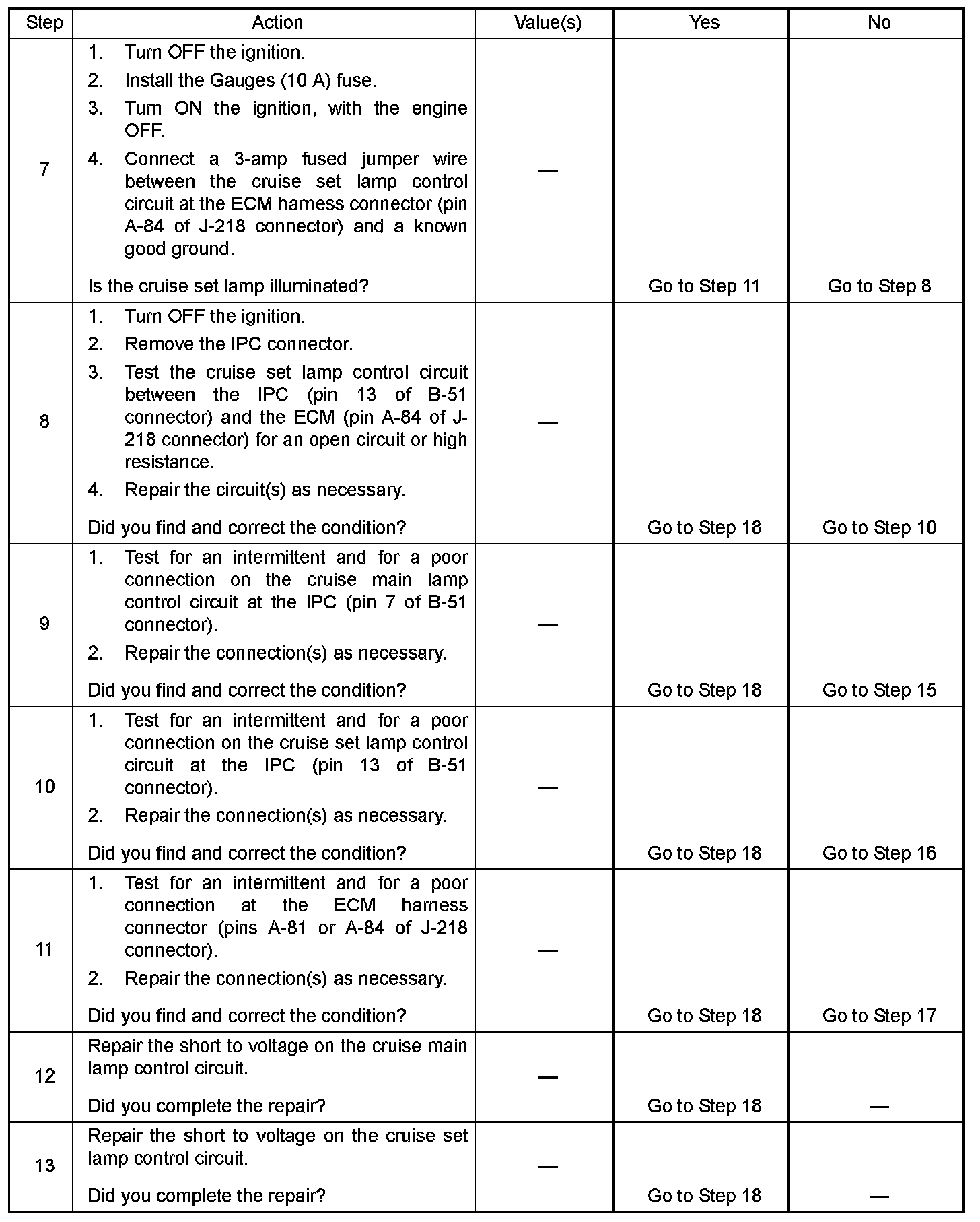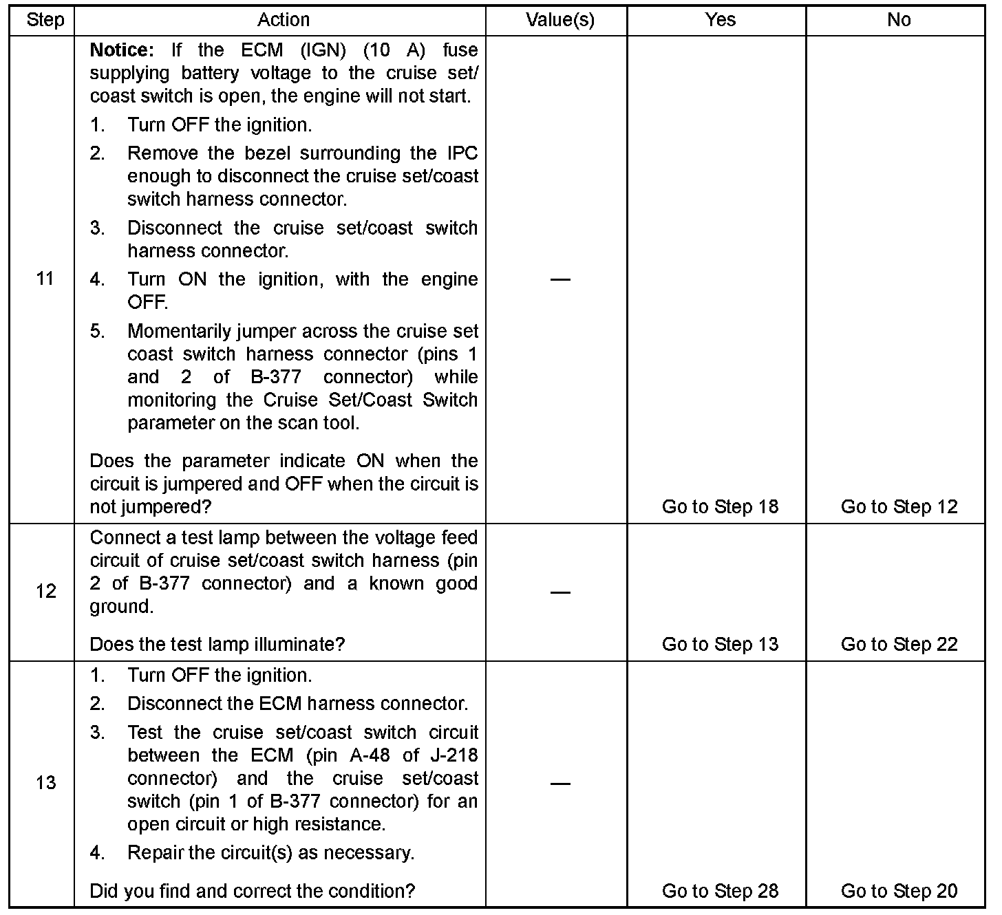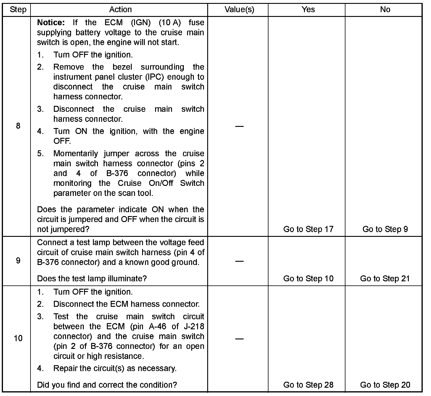 - The DTCs relating to the cruise control system are set.