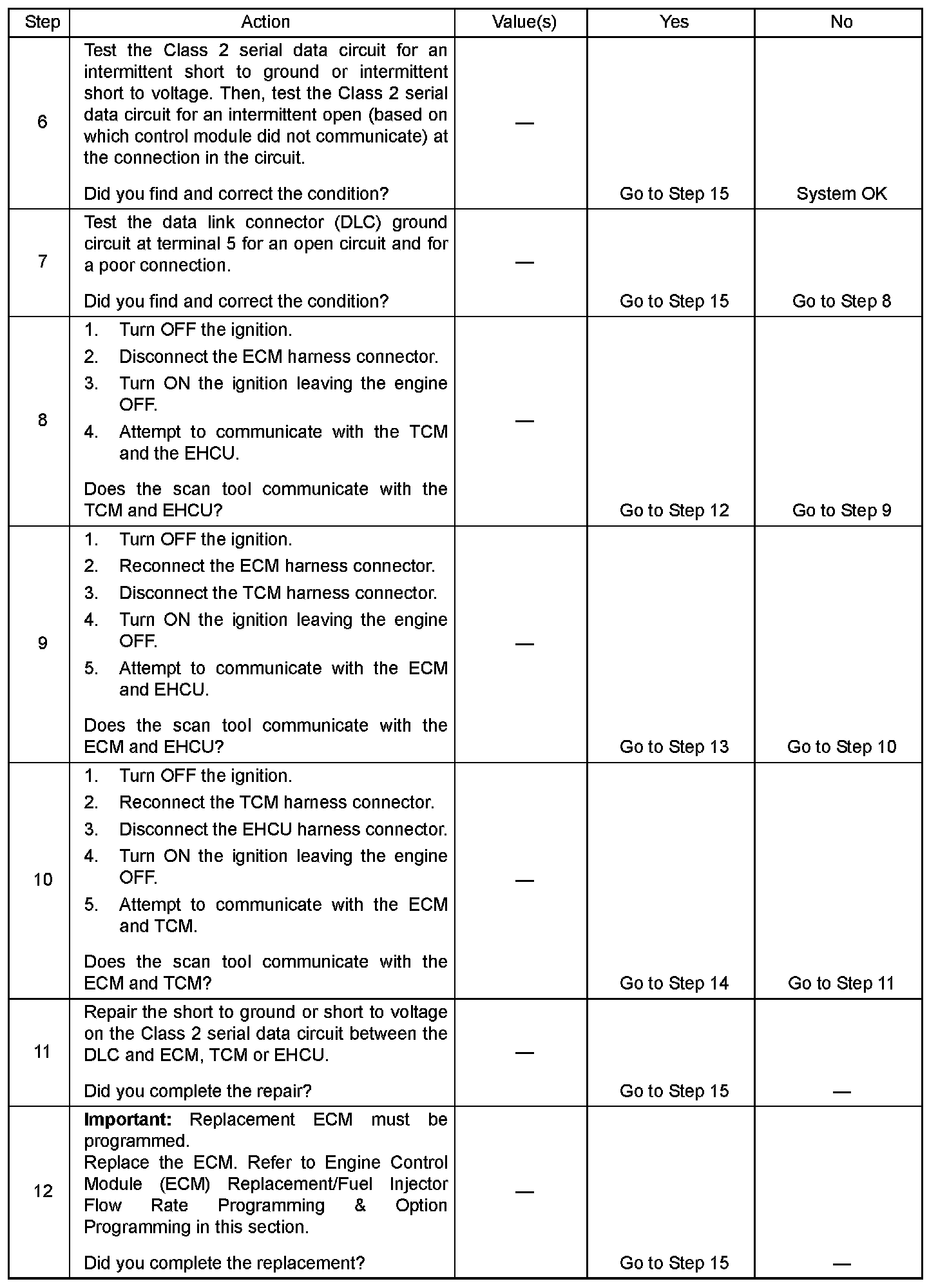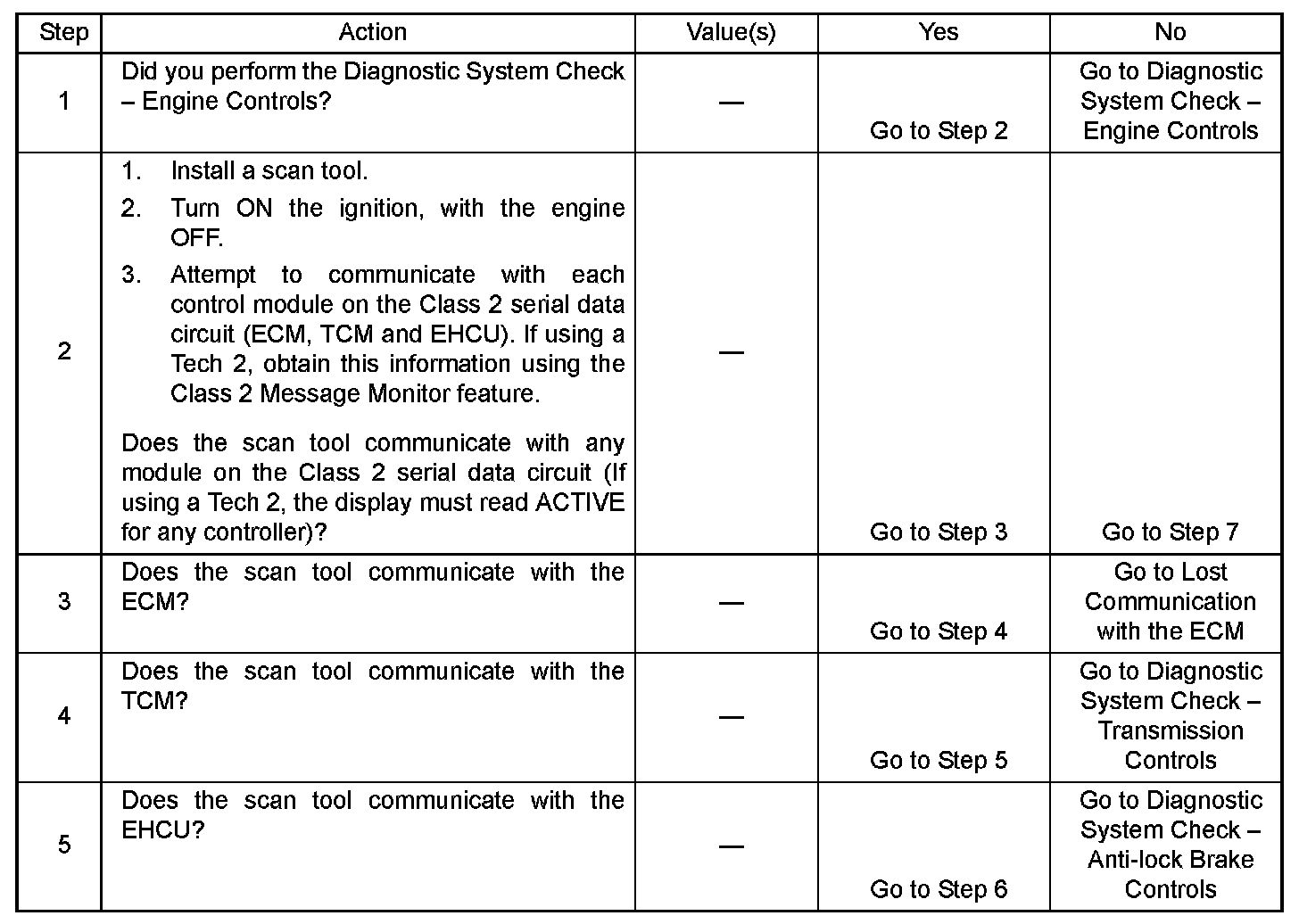 The following conditions will cause a loss of class 2 serial data communication between the TCM and EHCU or between the scan tool and any control module: