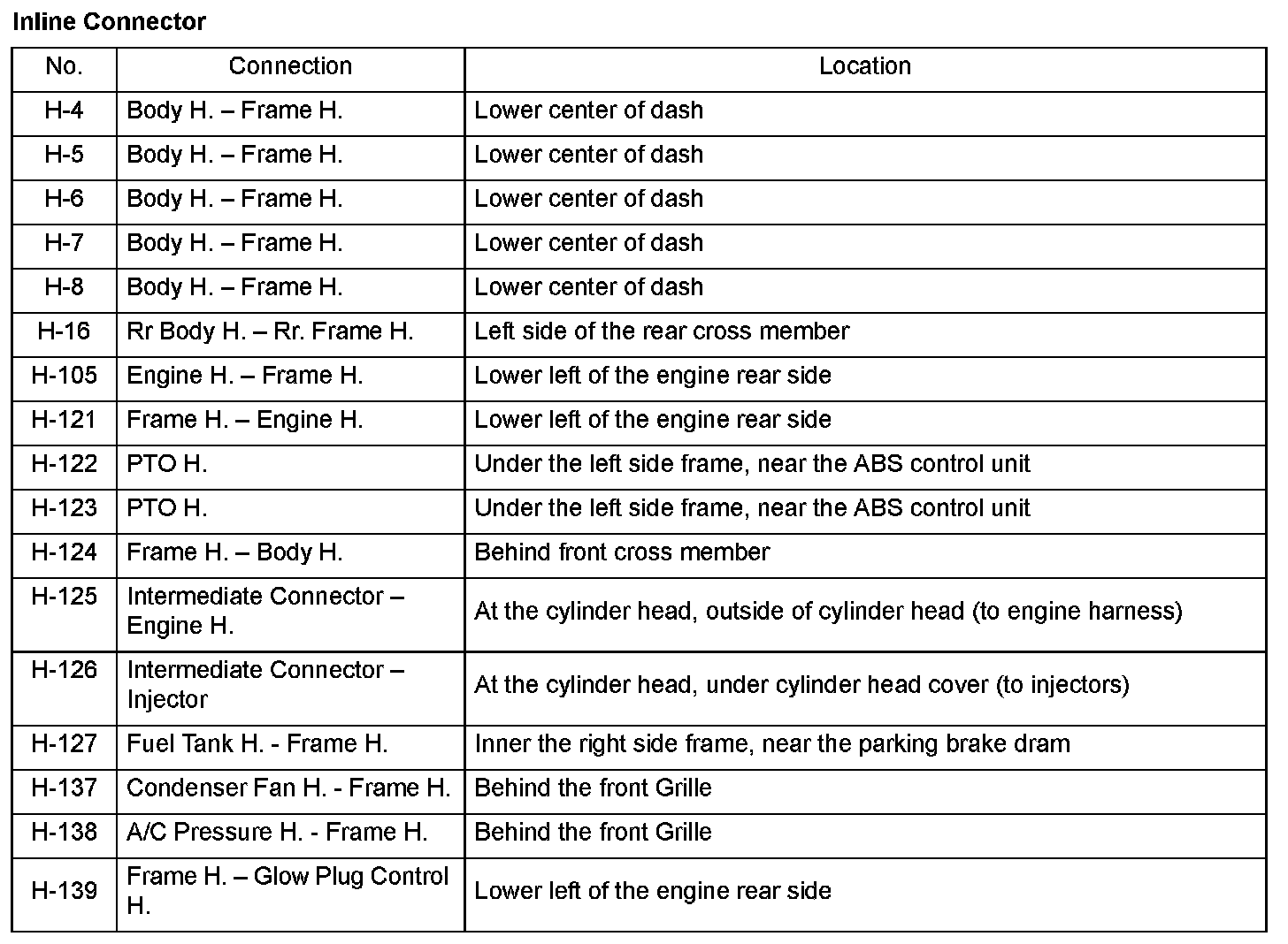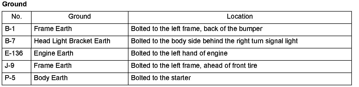 Harness Connector, Joint and Ground Locations