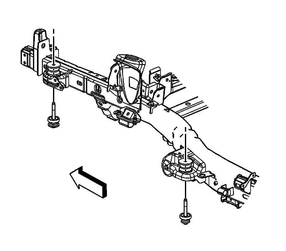 3. Remove the bolt/cushion assembly at the number 1 and the number 2 body mount.
