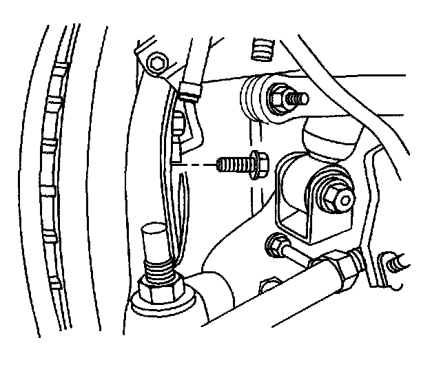 4. Remove the front retaining bolt for the speed sensor bracket at the upper control arm.