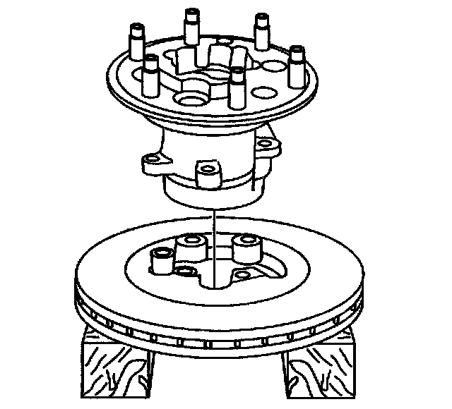 1. Position the wheel bearing/hub assembly on the brake rotor.