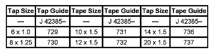 The tool kit J 42385-400 is designed for use with either a suitable tap wrench or drill motor. Limited access and larger hole repair may process better using a tap wrench. An extension J 43965 may also be necessary to drive the thread repair tooling dependent on access to the hole being repaired.