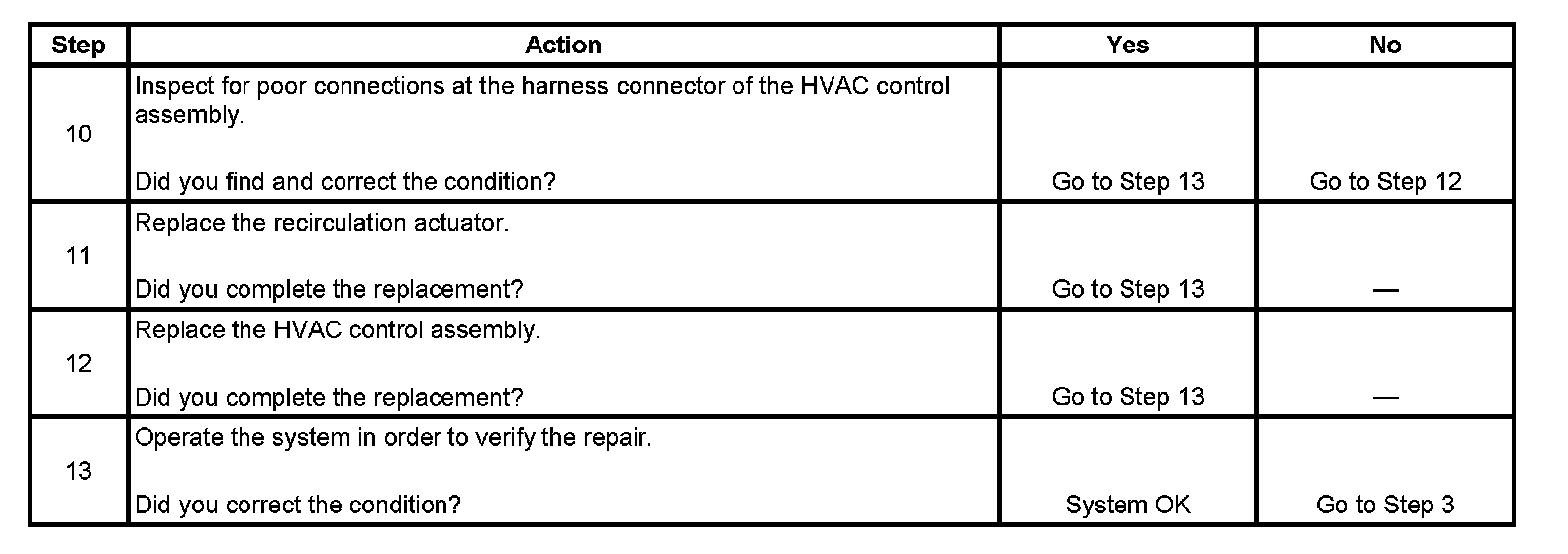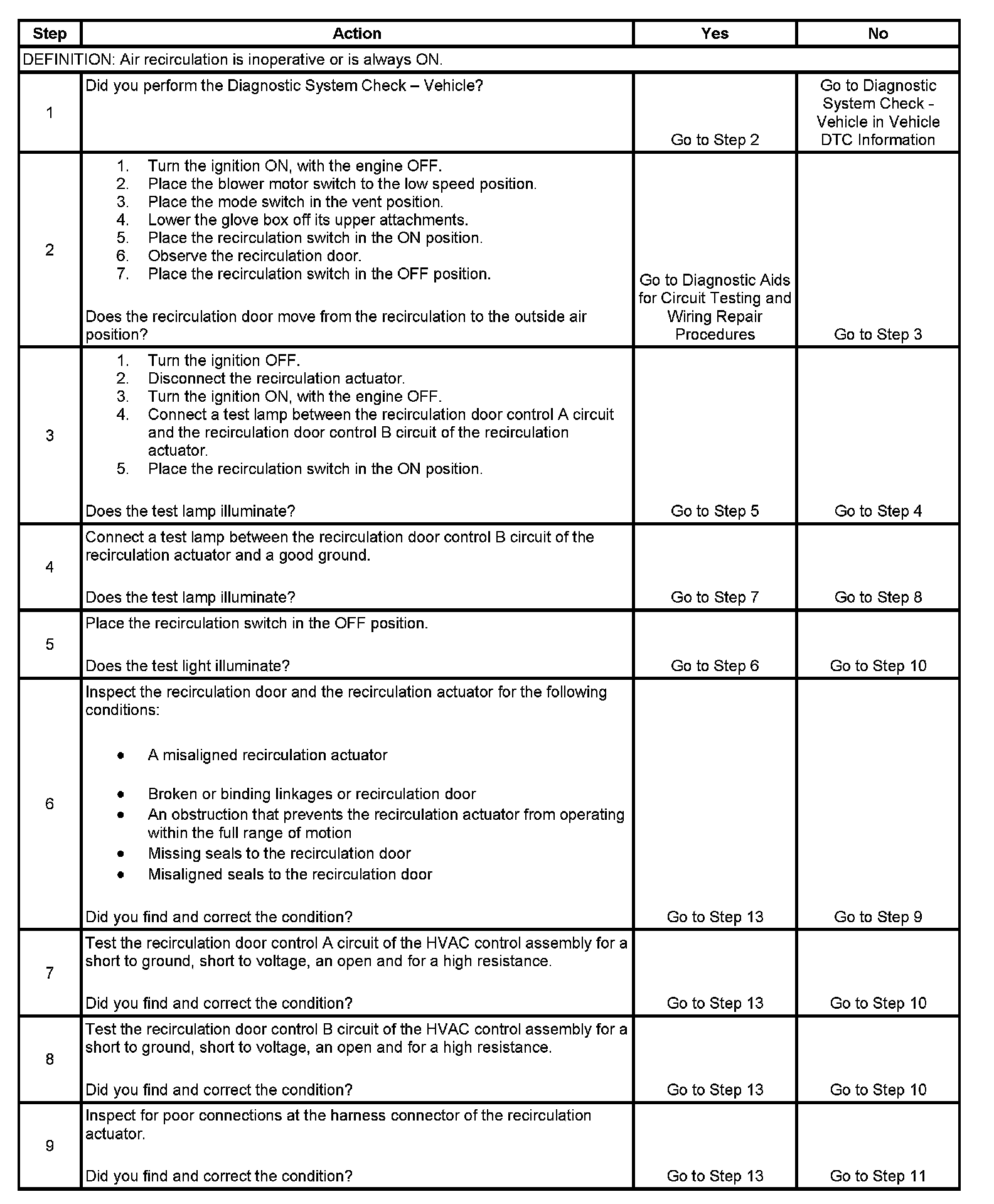 AIR RECIRCULATION MALFUNCTIONTEST DESCRIPTIONSteps 10 - 13: