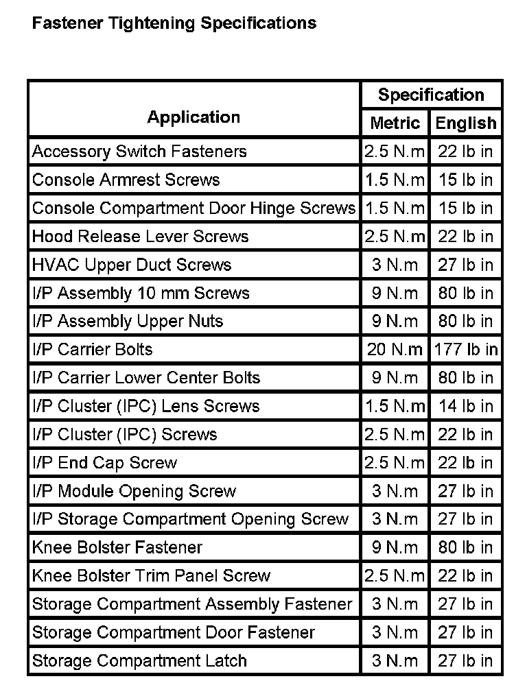 Instrument Panel, Gauges and Warning Indicators: Specifications