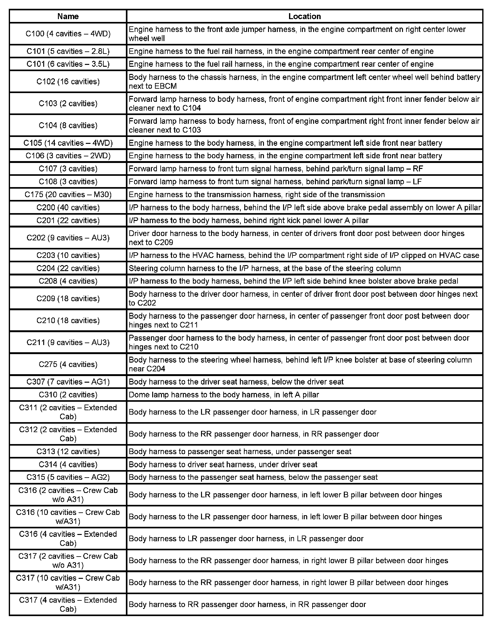 Connector Locations