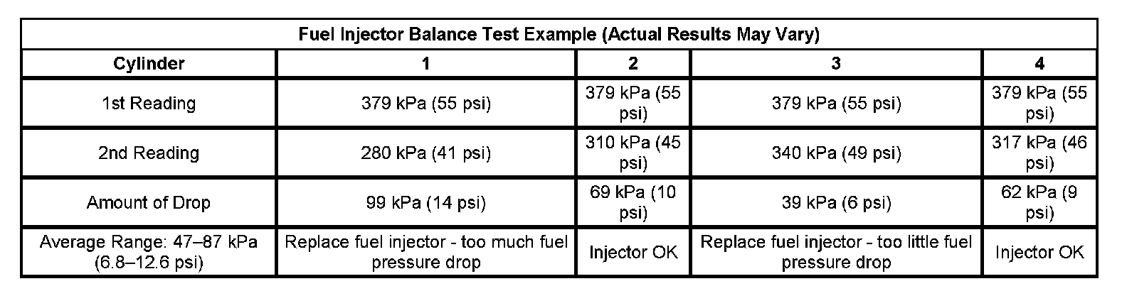 Fuel Injector Balance Test Example (Actual Results May Vary):