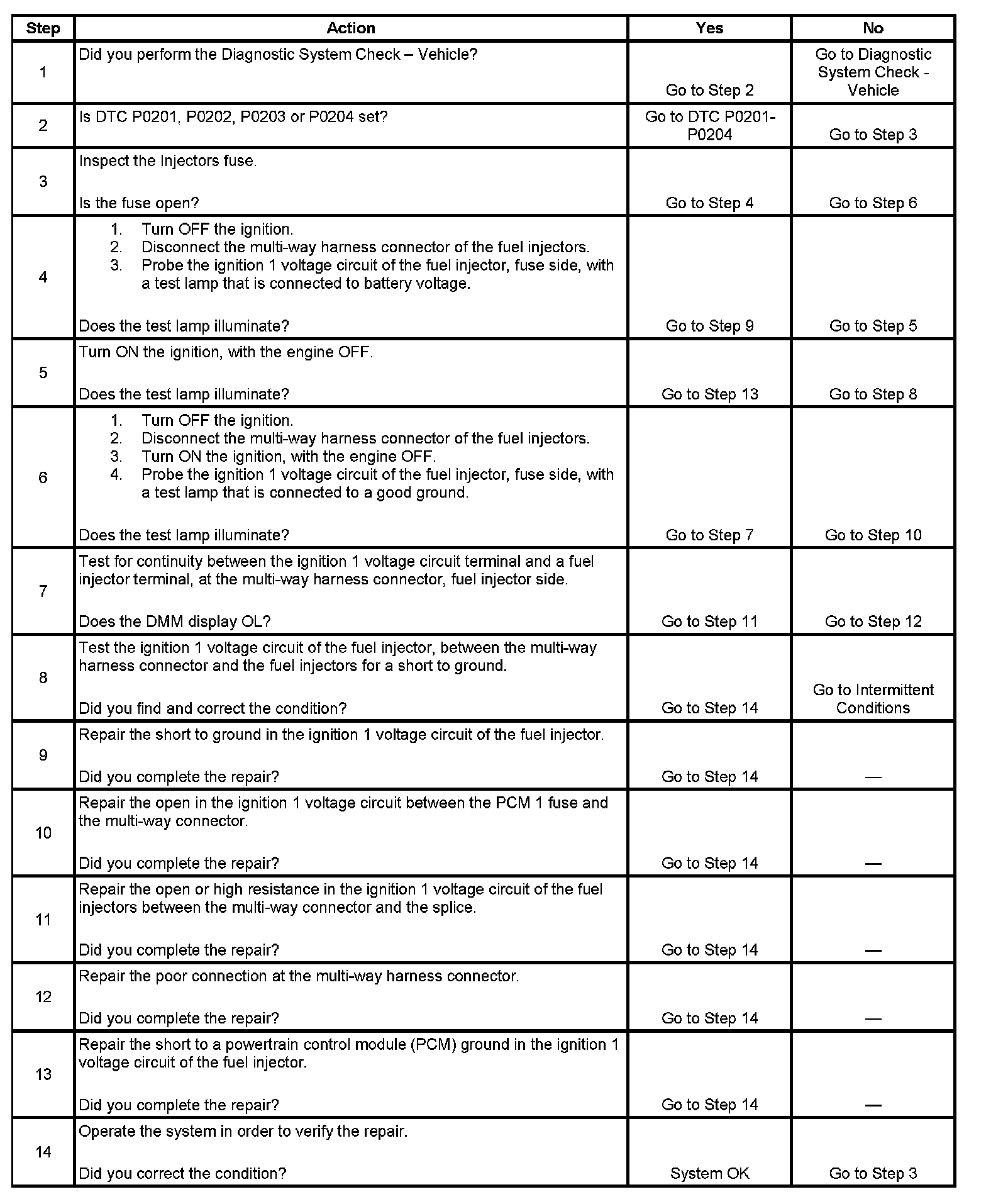 Fuel Injector Circuit Diagnosis