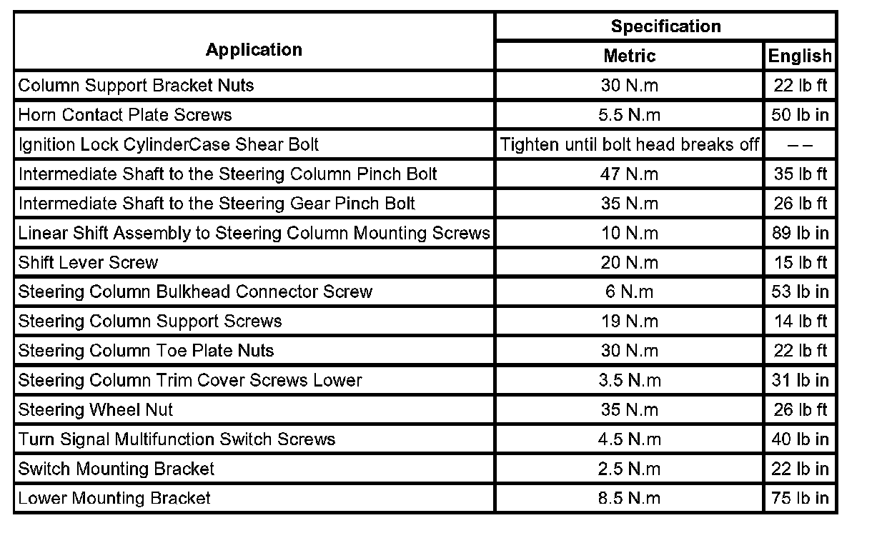 Fastener Tightening Specifications: