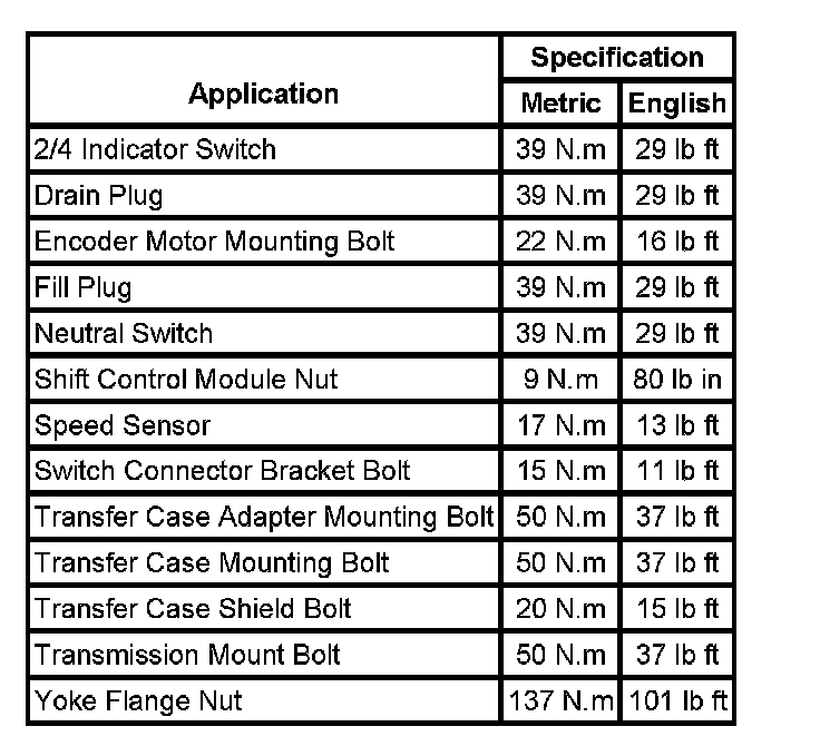 Fastener Tightening Specifications: