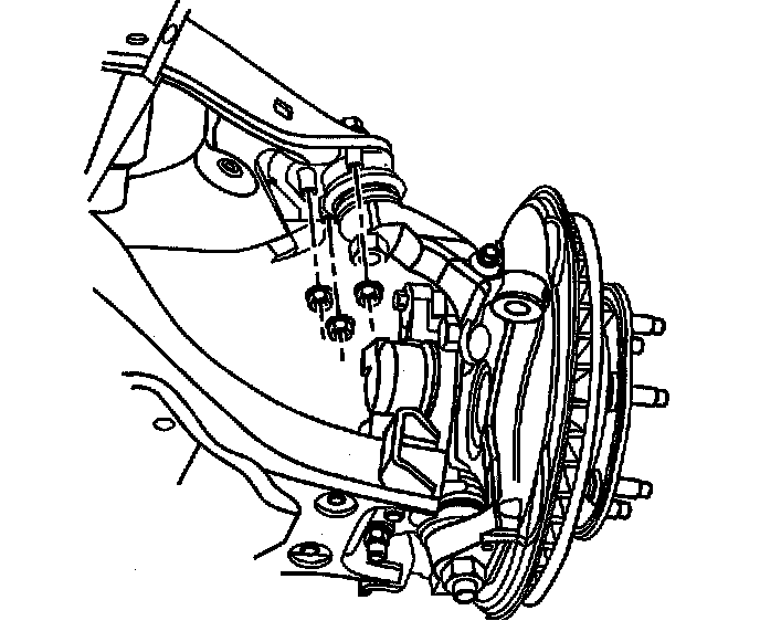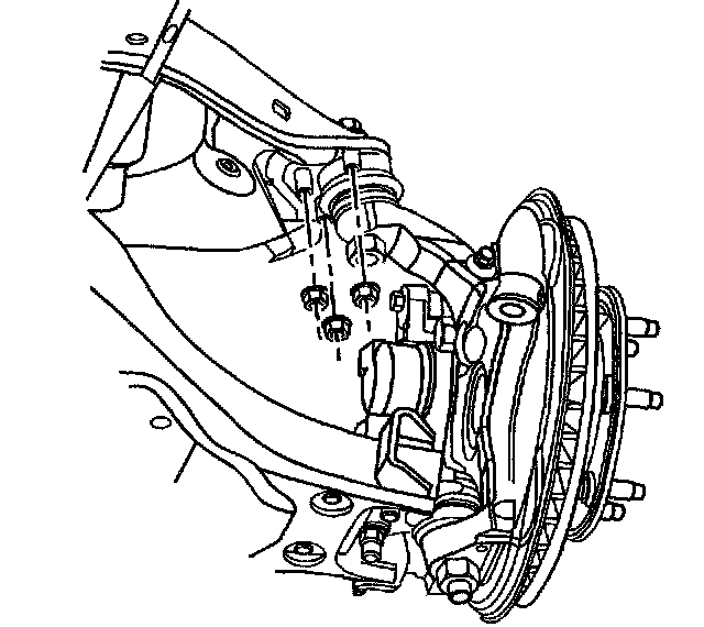 7. Disconnect the upper control arm from the ball stud by removing the retention nuts.