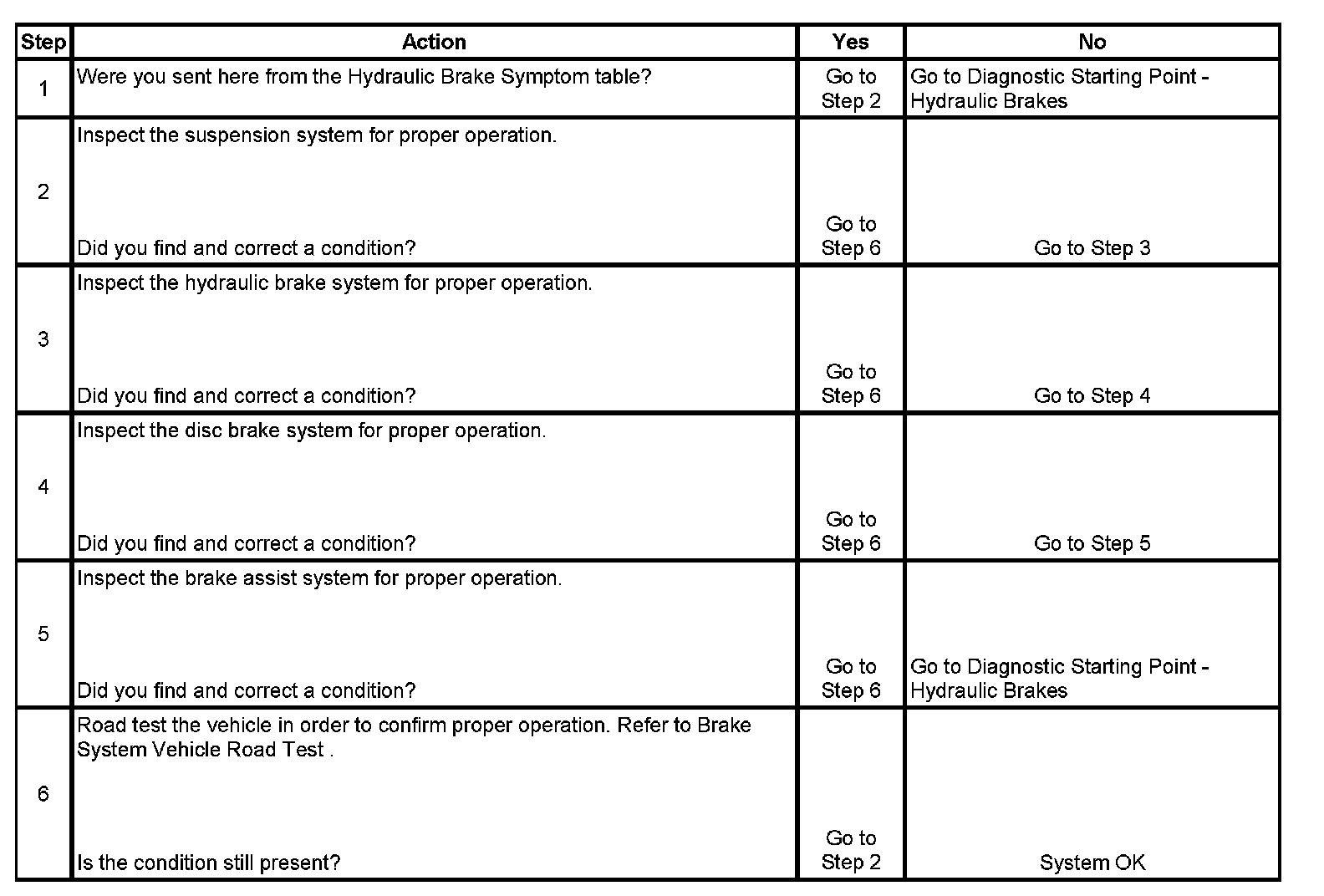 2. Suspension components that are not operating properly may cause a disturbance to the vehicle during application of the brake system.