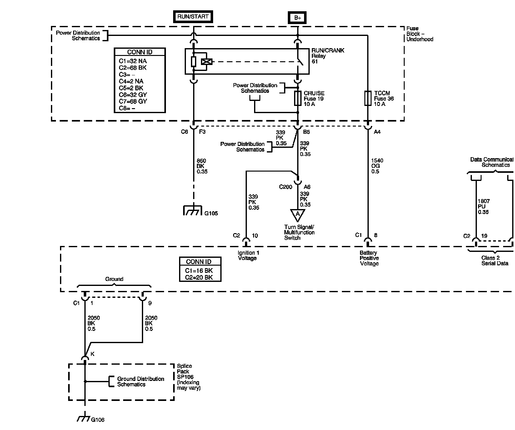 The locations for the Connectors, Grounds, Splices, and Grommets shown within these diagrams can be found via their numbers at Vehicle Locations.