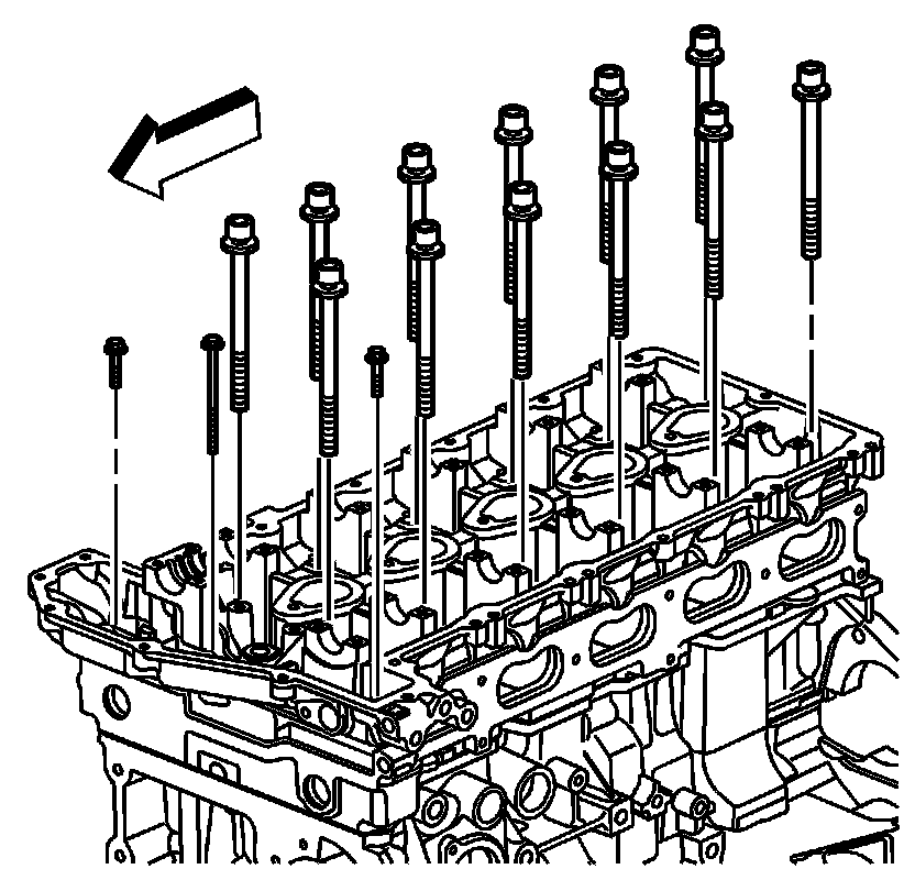 1. Tighten the (12) long cylinder head bolts in sequence to 30 N.m (22 lb ft).