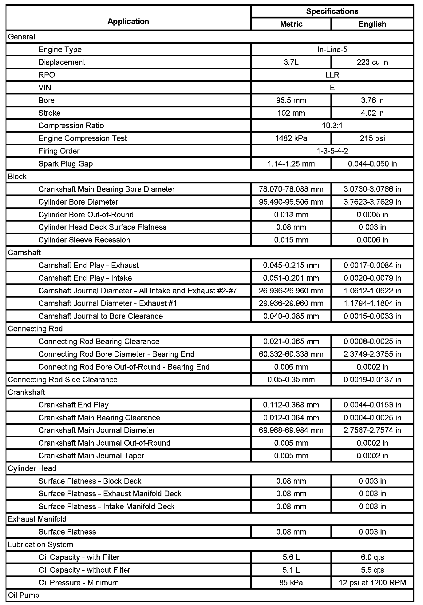 Engine Mechanical Specifications