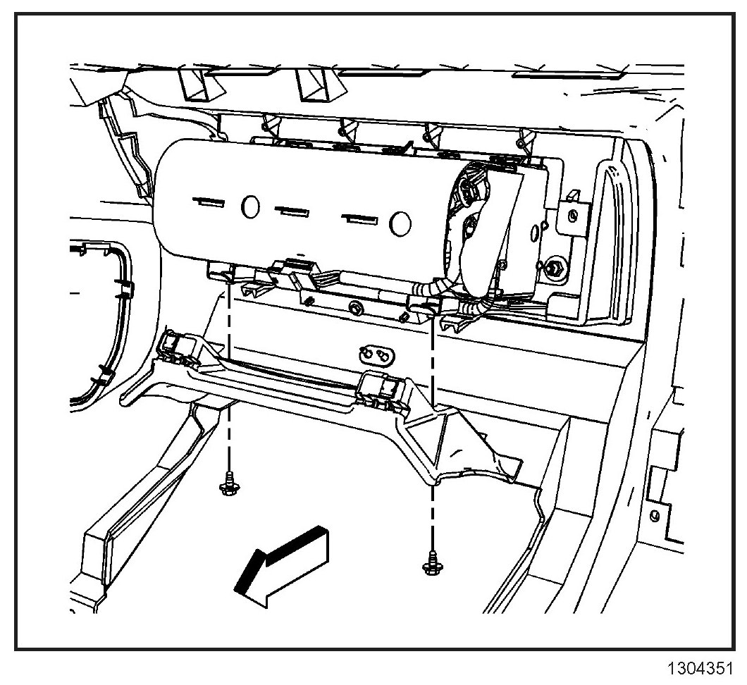 5. Access the inflatable restraint I/P module connector through the glove box.