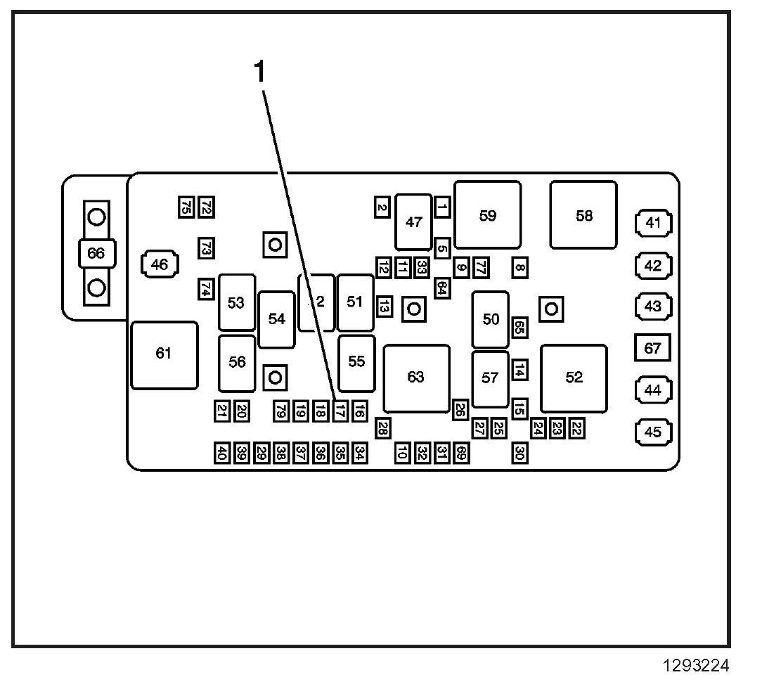 18. Install the SIR fuse to the fuse block (1) located in the underhood fuse block.