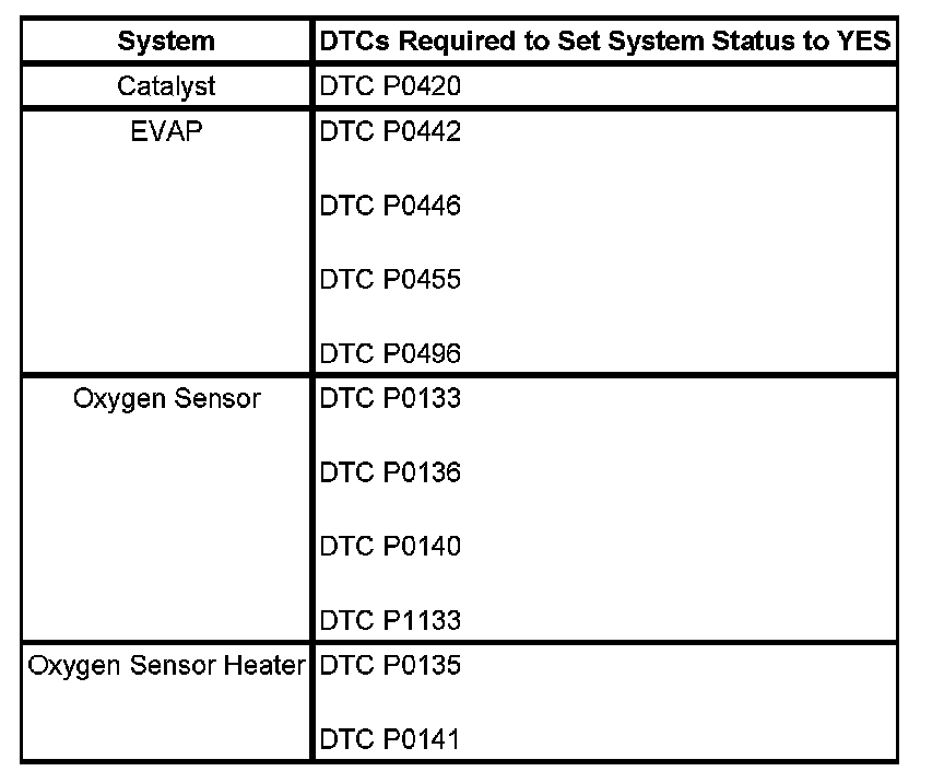 Inspection/Maintenance (I/M) System DTC Table