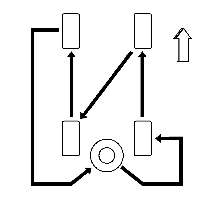 - For vehicles with single rear wheels (4 tires), rotate the tires as shown.