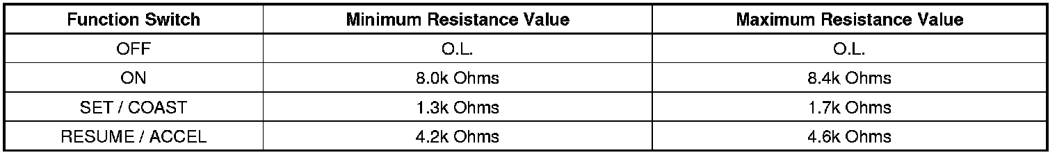 Important: The cruise control switch must be ON in order to properly measure the resistance of the set/cruise and the resume/accel switches.