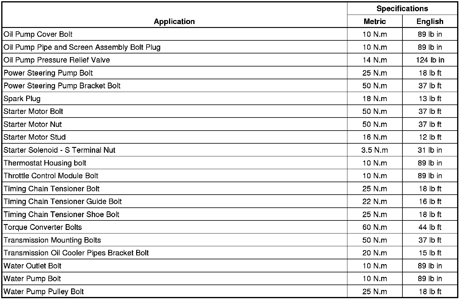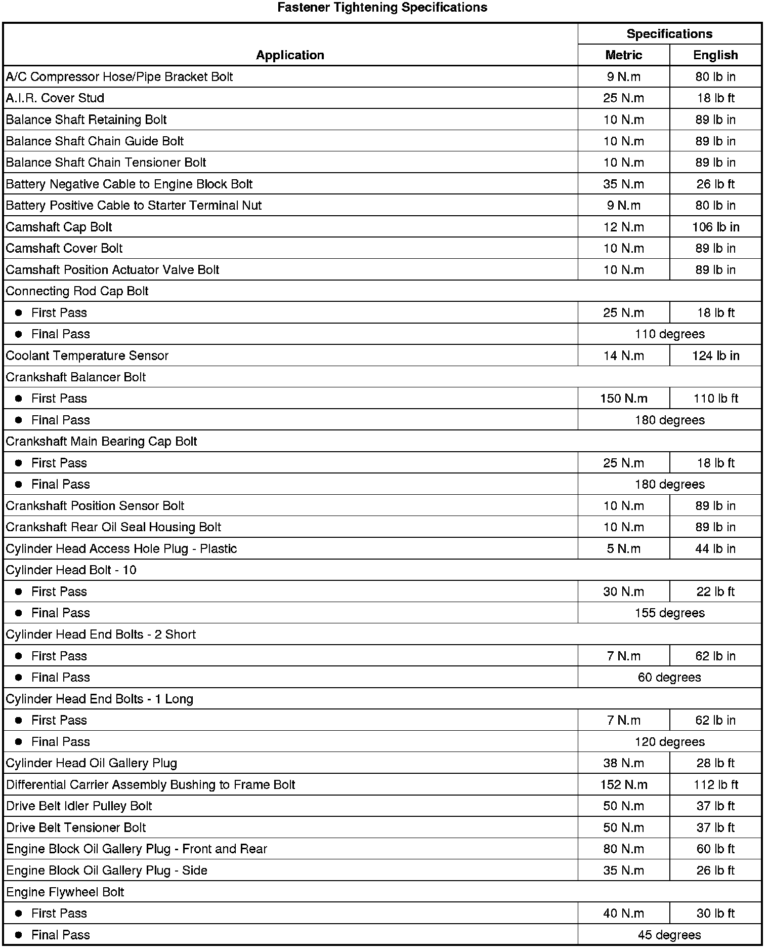 Fastener Tightening Specifications