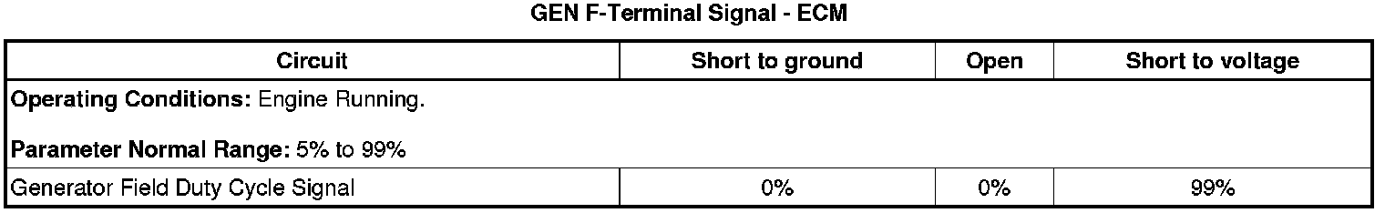 * The DTC passes when the generator field duty cycle signal circuit input is greater than 5 percent duty cycle.