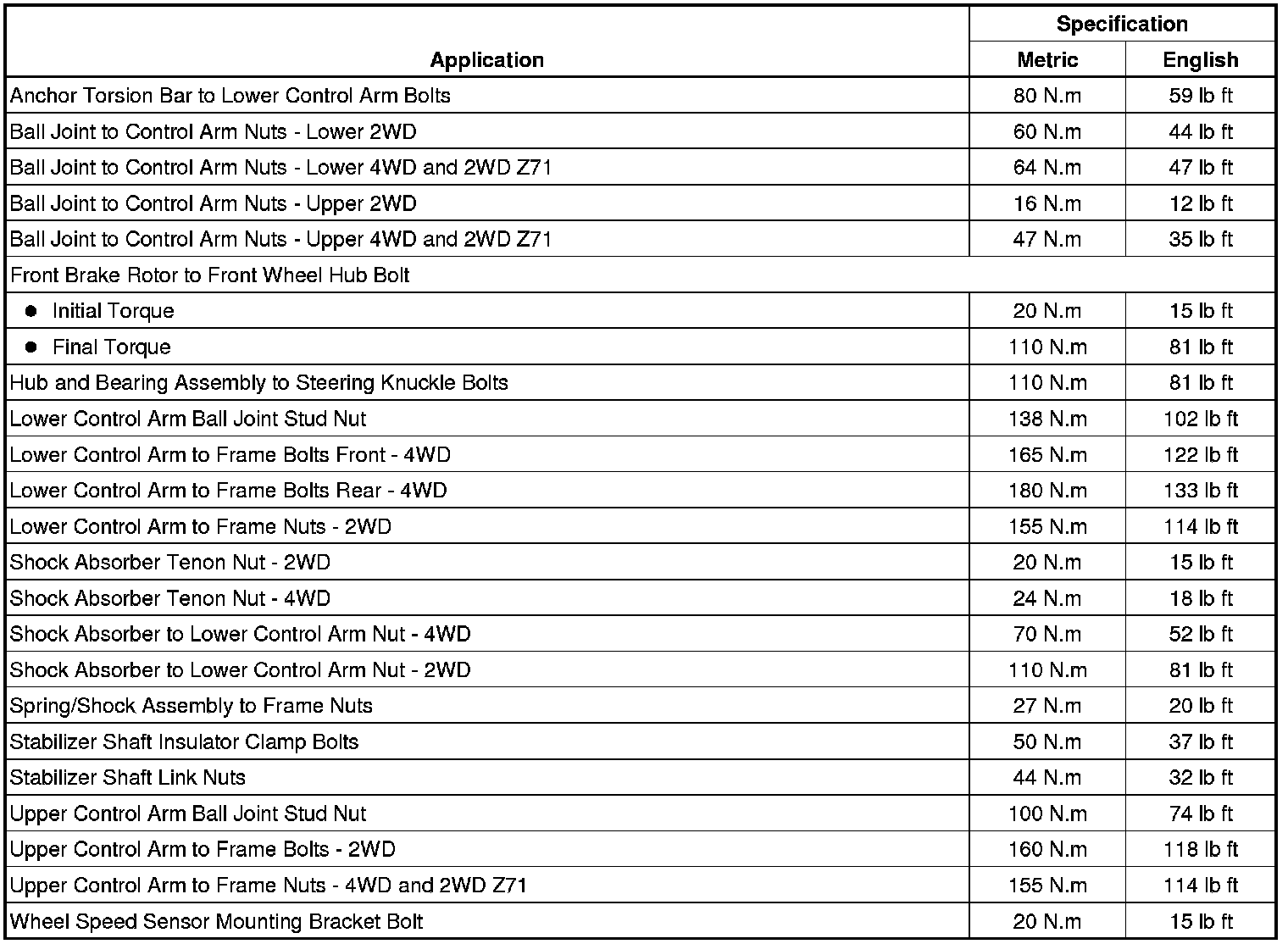 Fastener Tightening Specifications