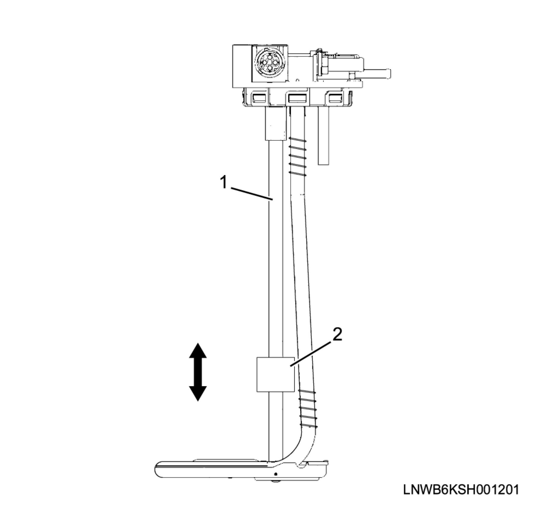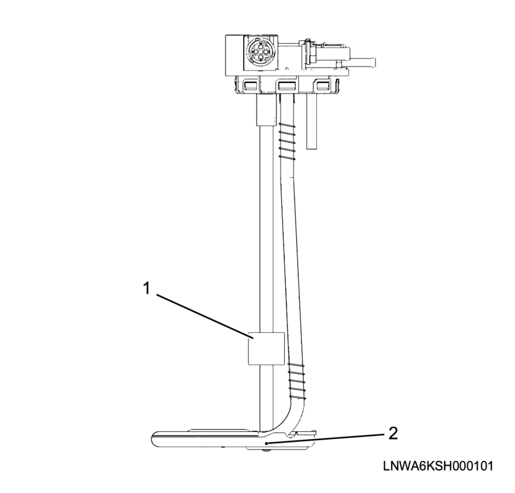 The Diesel Exhaust Fluid (DEF) level sensor is installed inside the DEF tank, and consists of the DEF tank temperature sensor and DEF level sensor. Each sensor sends the information related to the DEF inside the DEF tank to the DEF control module.