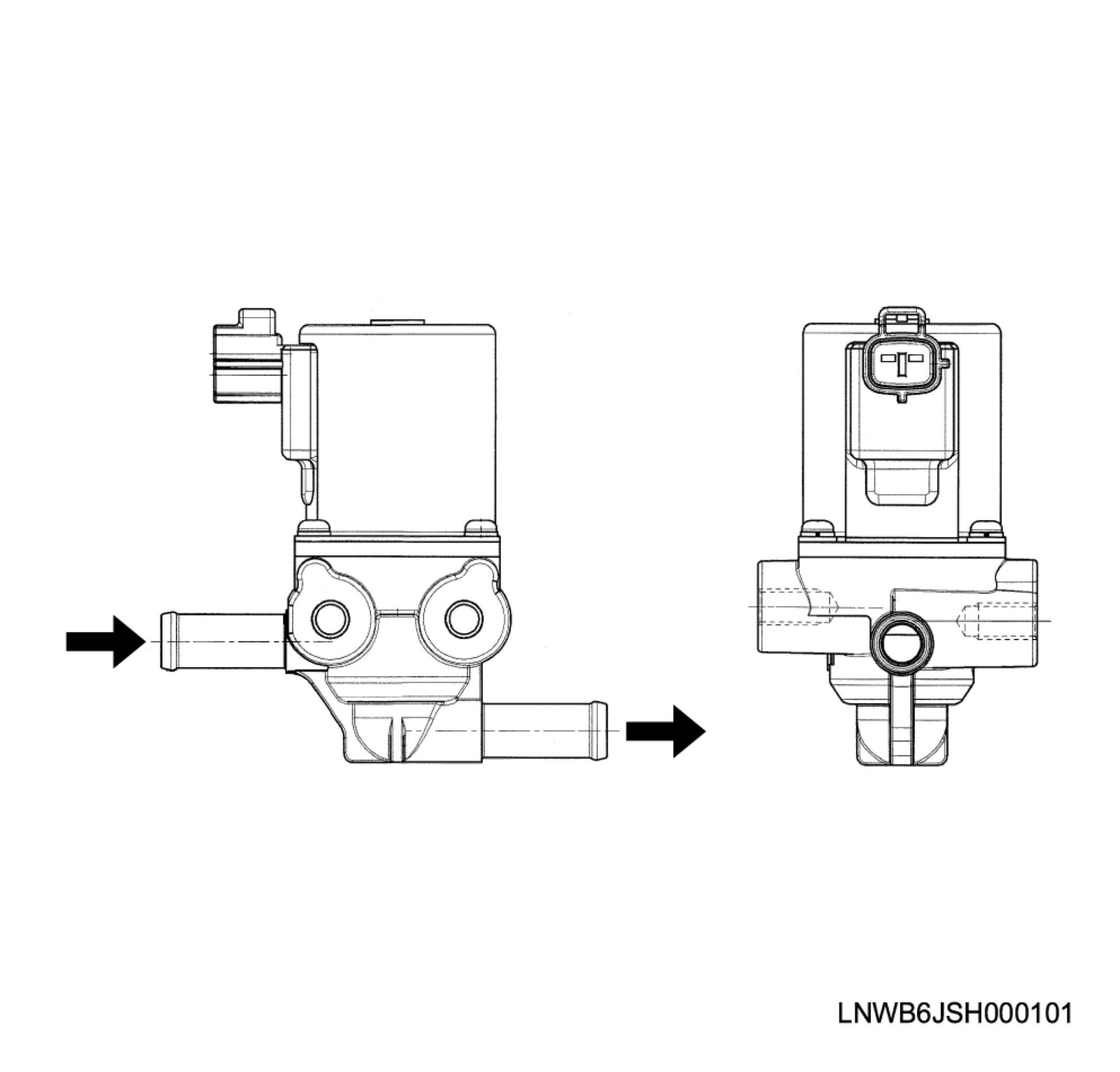 The DEF heater valve is installed on the left side of the DEF supply pump. The coolant control valve is controlled to open and close based on the signals from the DEF control module, and circulates the DEF inside the DEF tank and the engine coolant inside the DEF supply pump to defrost the DEF or keep it warm. However, the engine coolant that is cooling the DEF injector diverges right in front of the DEF heater valve, so it does not go through the DEF heater valve.