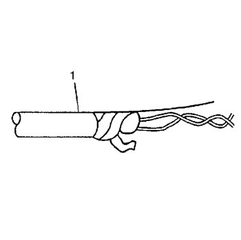 1. Remove the outer jacket (1). Use care not to cut into the drain wire of the mylar tape.