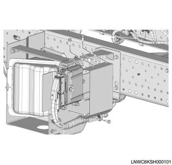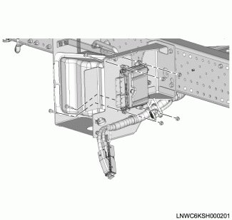 2. Tighten the DEF control module fixing bolts and nuts.