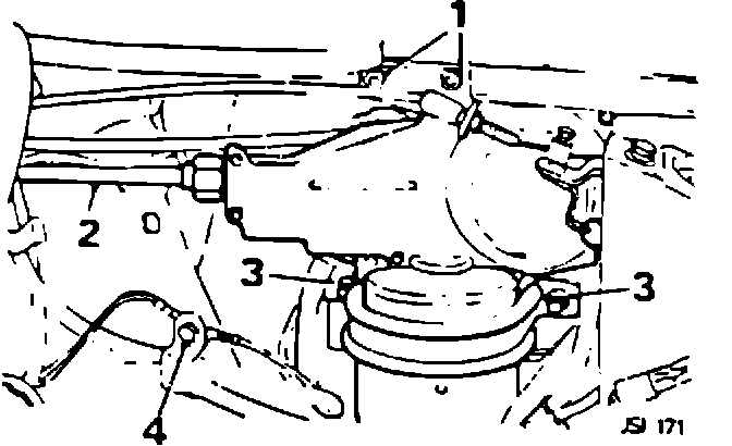 Remove the two retaining nuts and washers from the motor clamp, Fig .1 - (3) .