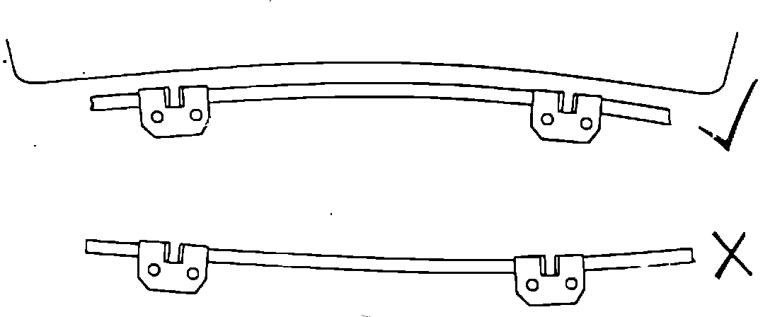 2. That the conduit section between both wheelboxes is fitted correctly. This section has a slight curve which should follow the line of the windshield, see Fig. 3.