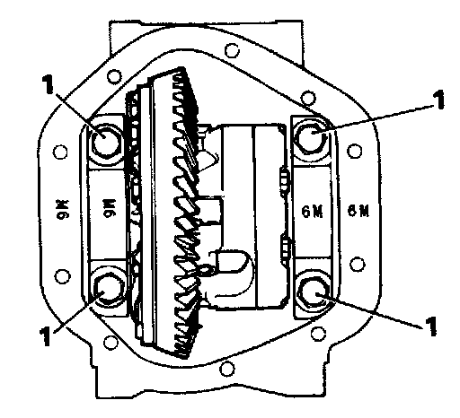 In the absence of any alignment marks (1, Fig.35), scribe a line across both halves of differential casing to facilitate reassembly.