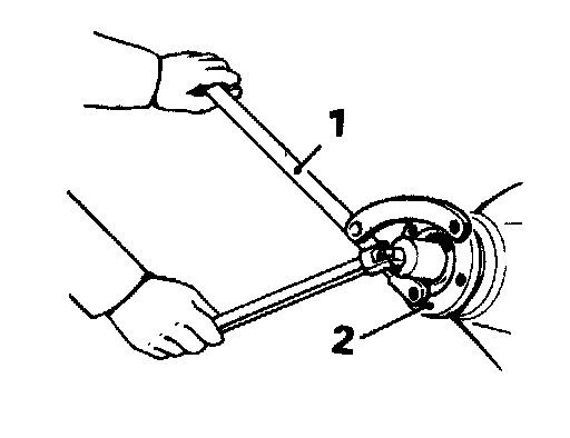 Using tool 18G 1205 (1, Fig.32) to hold the drive flange. remove the pinion nut and washer and withdraw the flange (2, Fig.32)