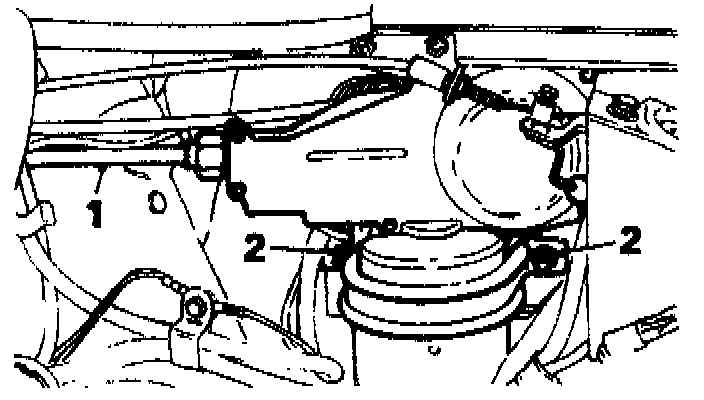 6. Remove the two retaining nuts and washers from the motor clamp (2).