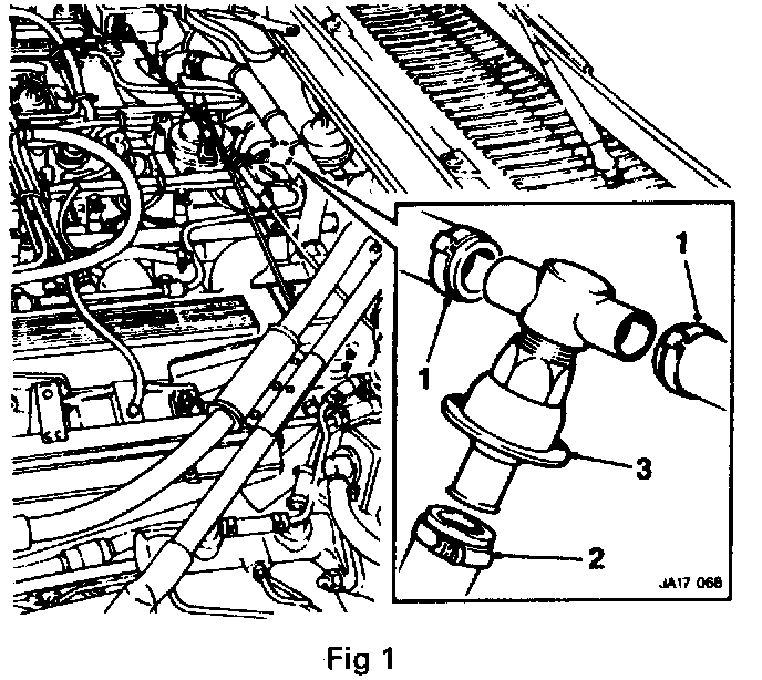Remove the lower clip securing the check valve inlet hose (2). Remove the check valve (3). Fit the new valve to the inlet hose. Tighten the hose clip.