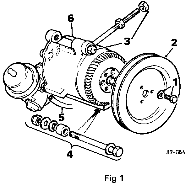 Remove the air pump pulley securing bolts (1 Fig 1).