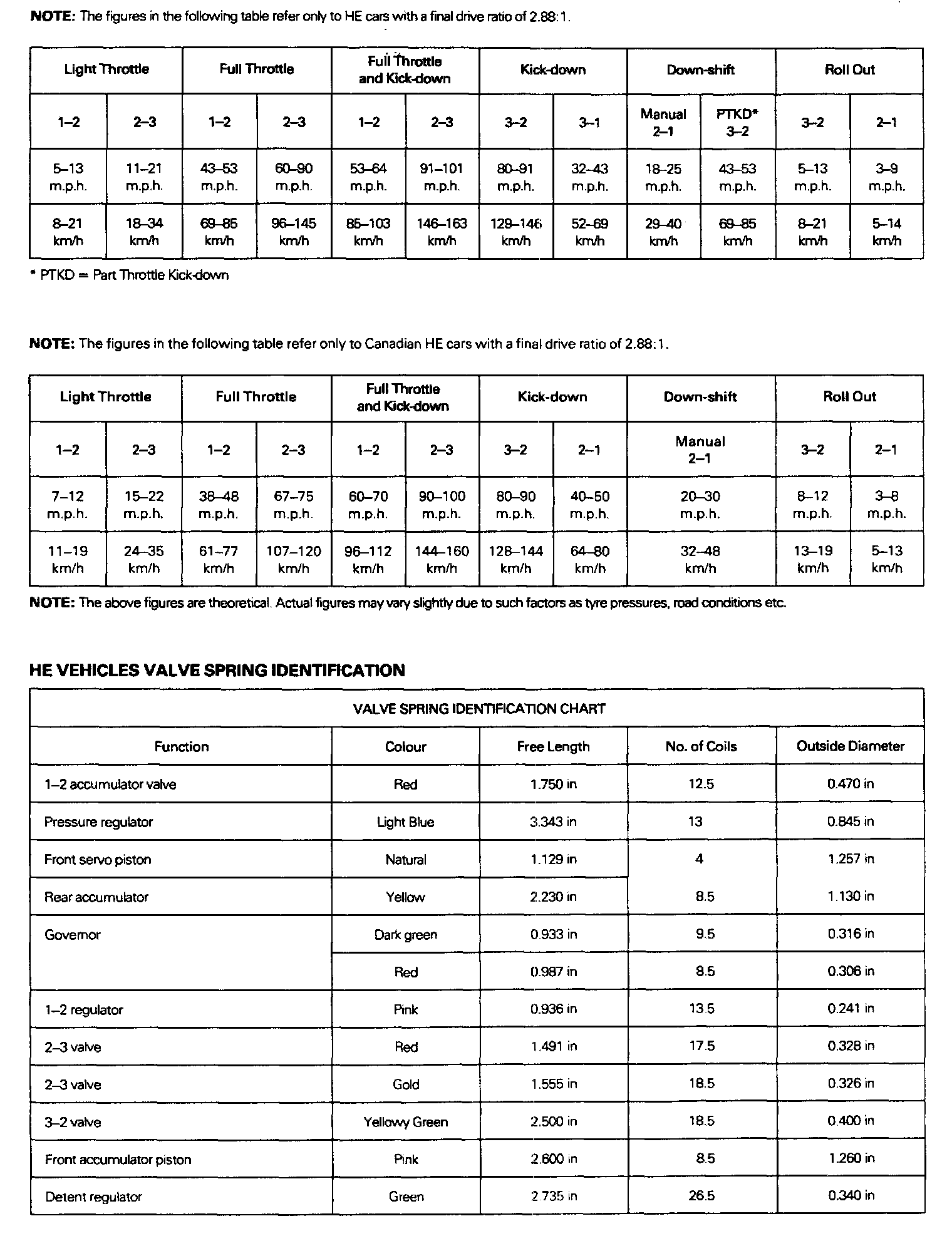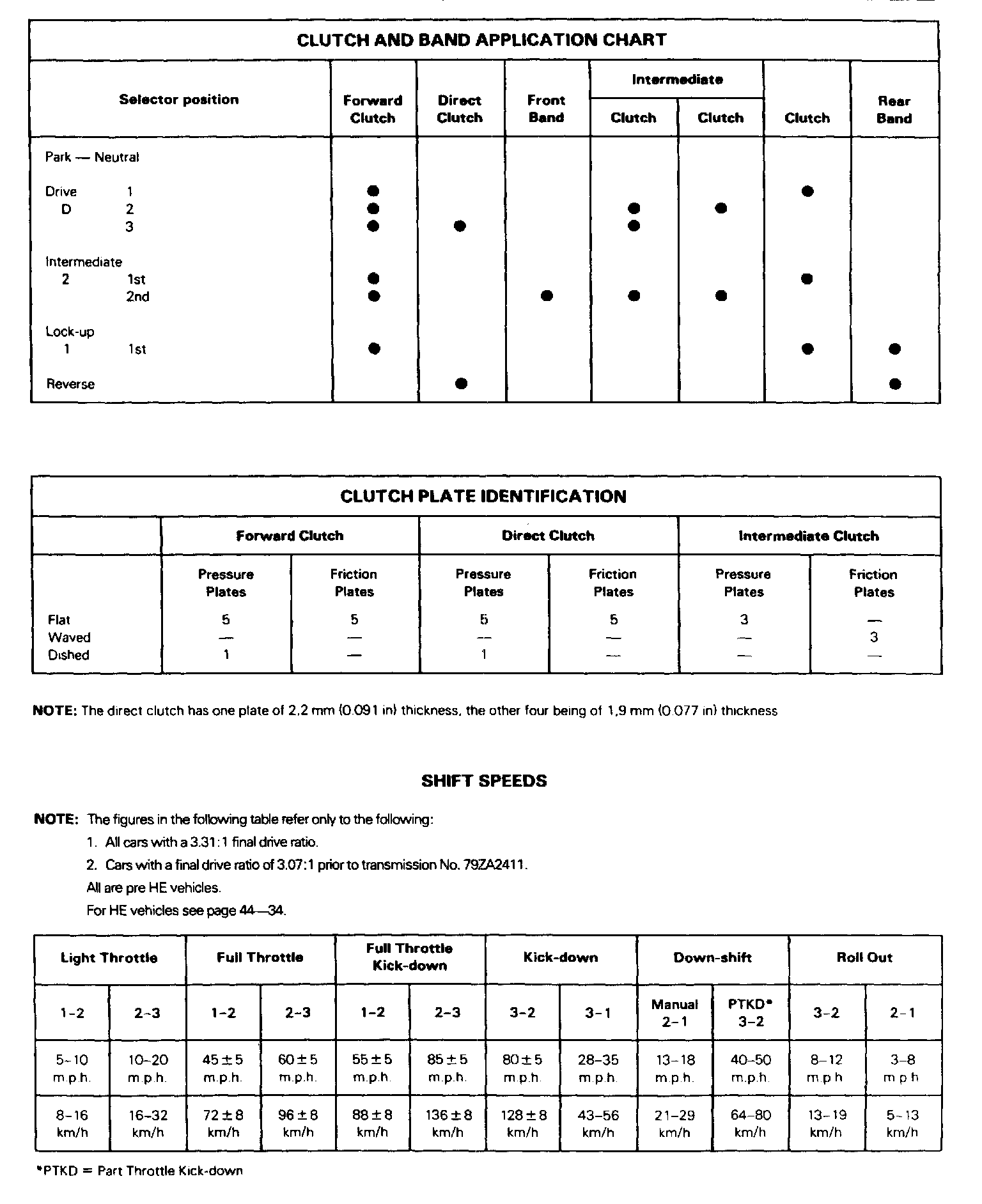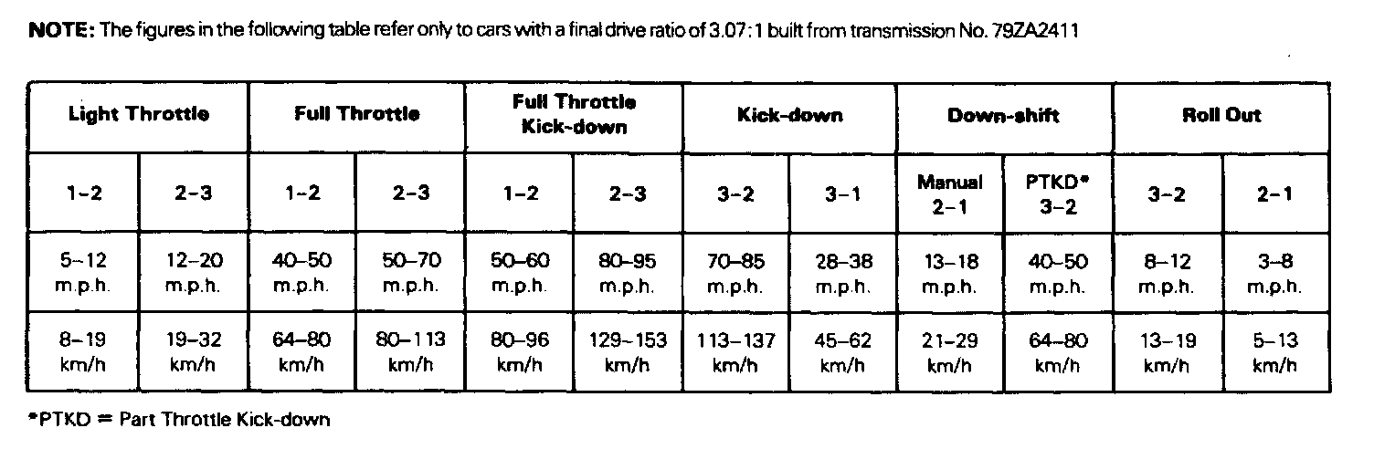 Shift Speed Specifications (Continued):