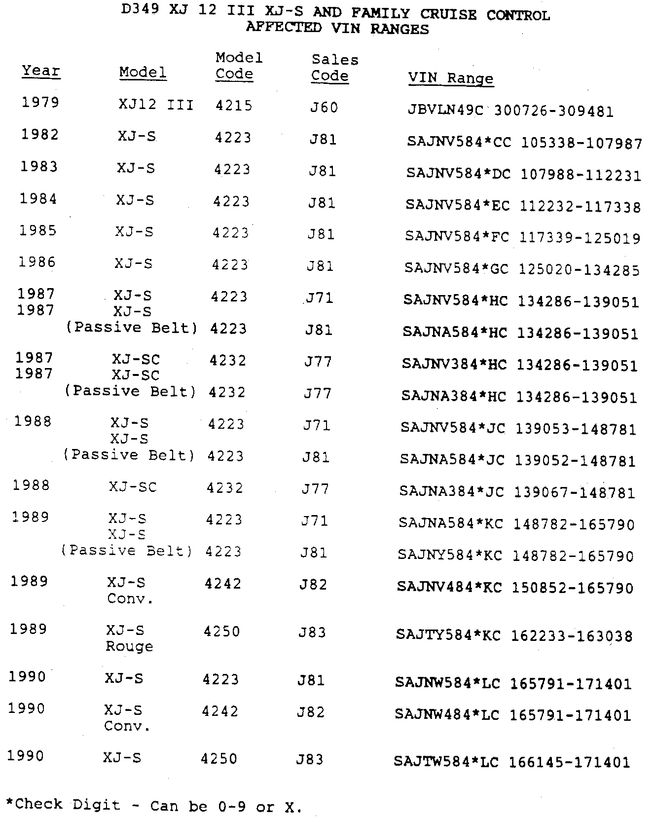 The information shown is the necessary fault code and labor operation information to file claims for the temporary action to immobilize the cruise control actuator (as per the Jaguar Cars Inc. letter which was sent to you February 22, 1990).