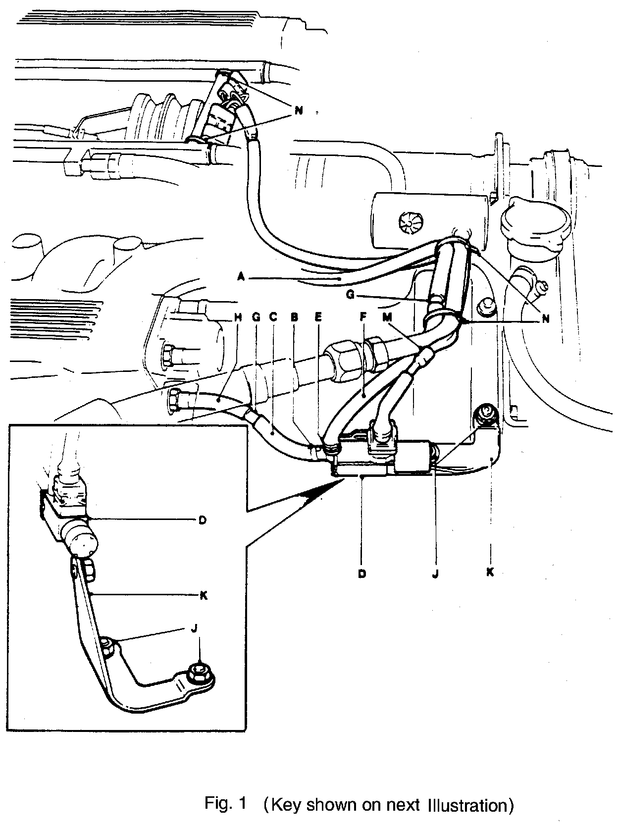 ^ Connect the new link harness (DAC 7721, fig. 1 M) to the solenoid valve, (fig. 1 D).