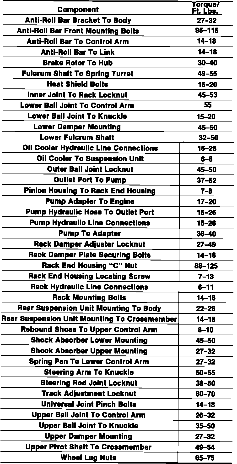 Torque Specifications, Front