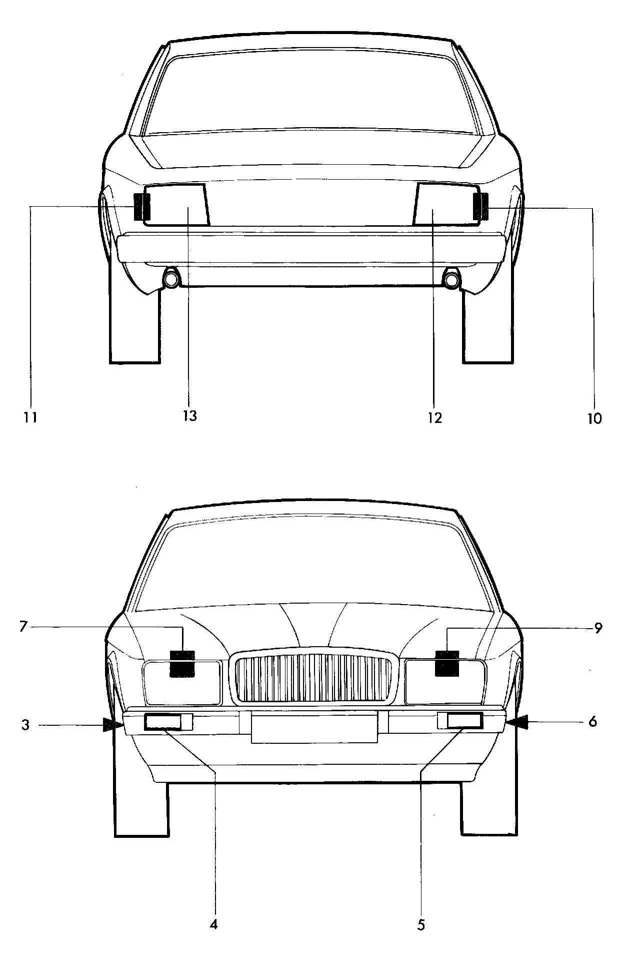 13 LH rear direction indicator lamp.