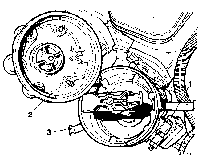 Fit the distributor cap (2) to the distributor and engage the retaining clips (3).