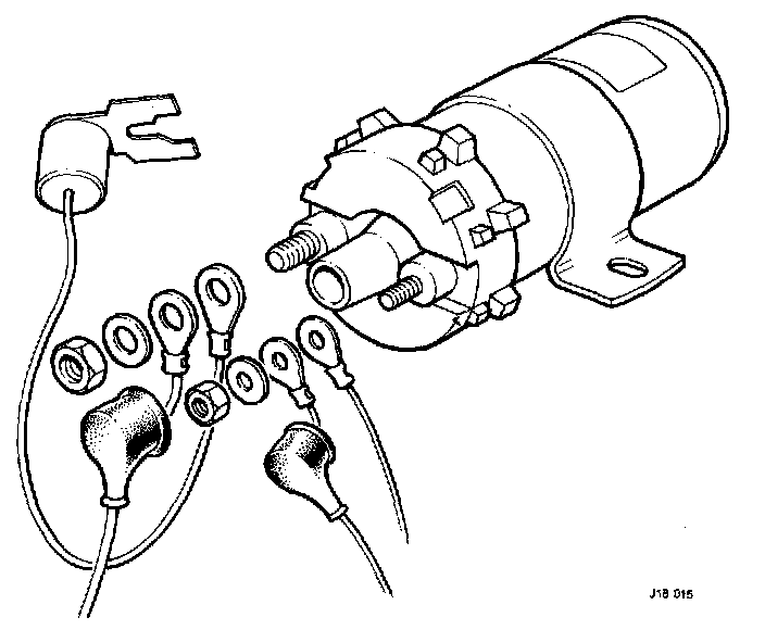 Fit the bracket to the new coil, position the coil and fit the bracket inner and outer securing bolts ensuring that the suppression capacitor bracket is below the inner bolt and the earth eyelet of the LT leads is below the outer bolt.