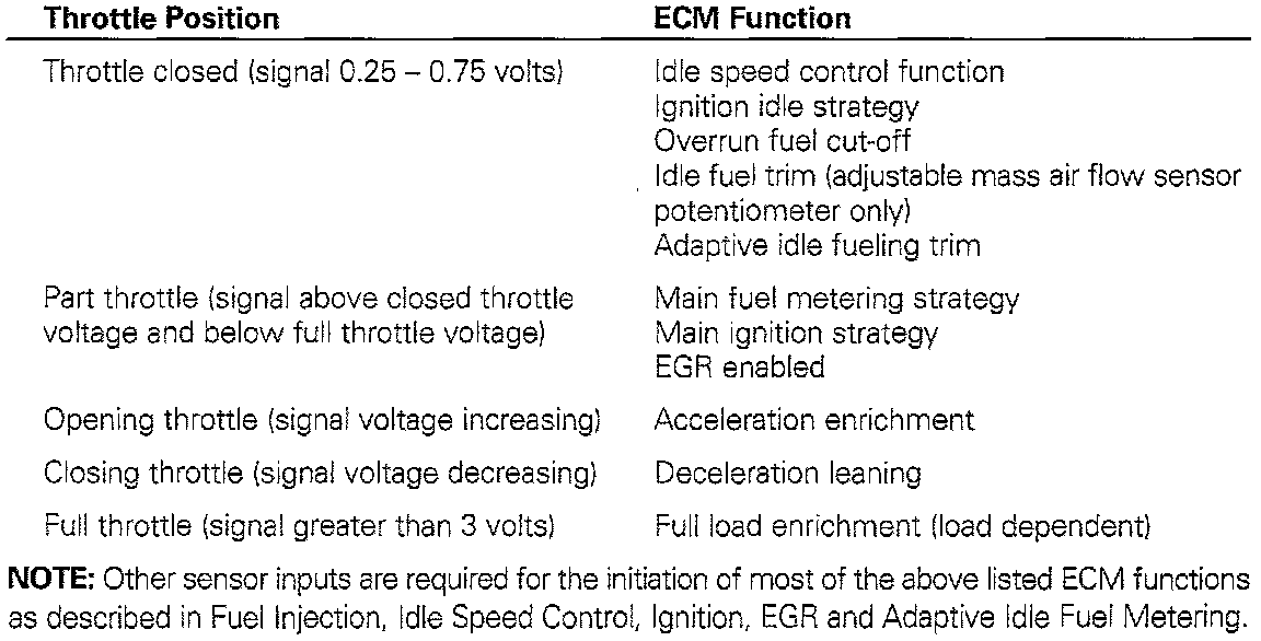 When the ECM senses that the throttle is closing (throttle position sensor input), the injector pulse duration is shortened dependent on the rate at which the throttle closed. This action prevents a momentary rich condition that can cause exhaust emission problems.